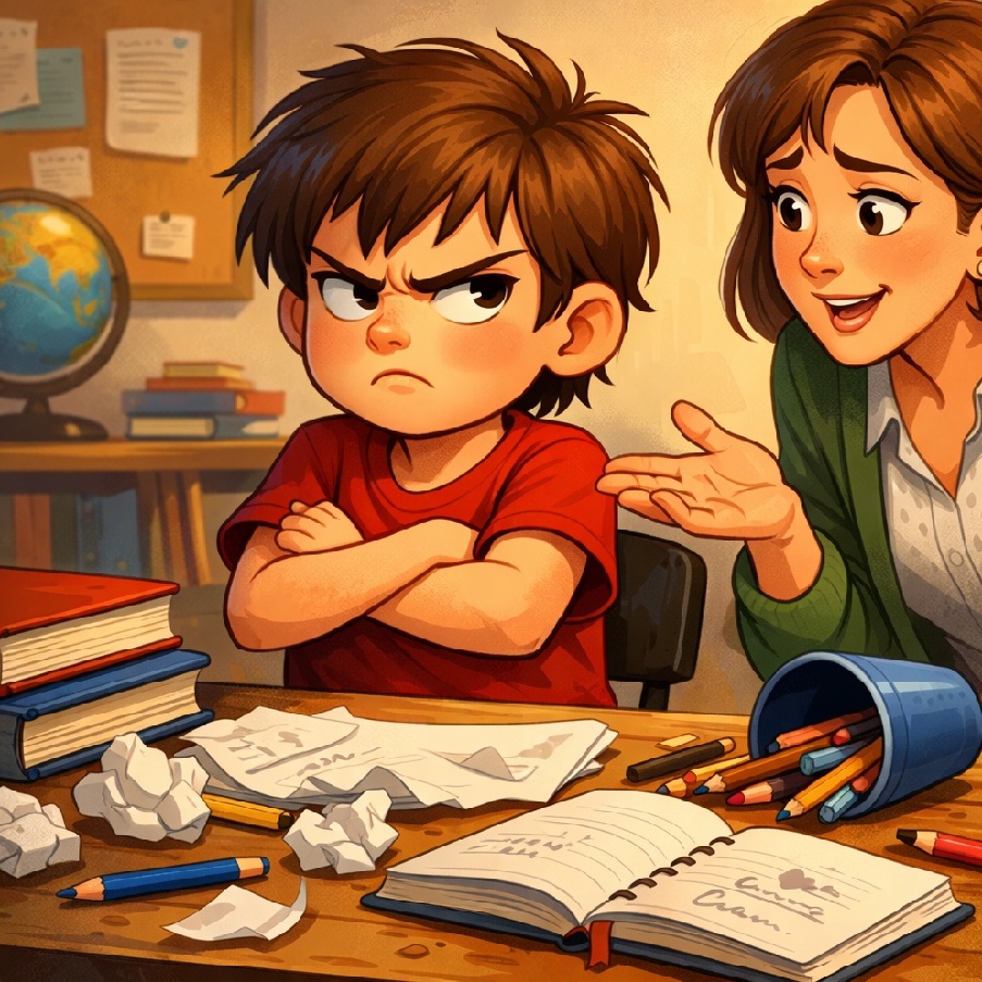 Упрашивать подростка начать задания. Стоять над ним, до тех пор пока не завершит всю домашку. И ответ только злость.